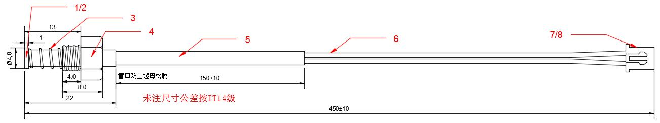 采用不锈钢封装ntc热敏电阻,与耐温200度导线连接,使用螺丝安装固定测温,可用于测量如咖啡机,豆浆机,热水壶等产品的温度