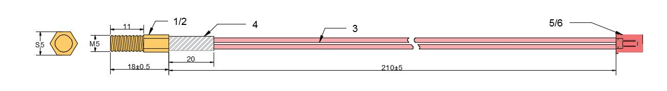 采用M5铜外壳,将ntc热敏电阻封装进去,与耐温200度导线连接,尾部使用XHB连接器,探头采用螺丝安装,便于安装。可测量如咖啡机,水壶,热水器等产品的温度